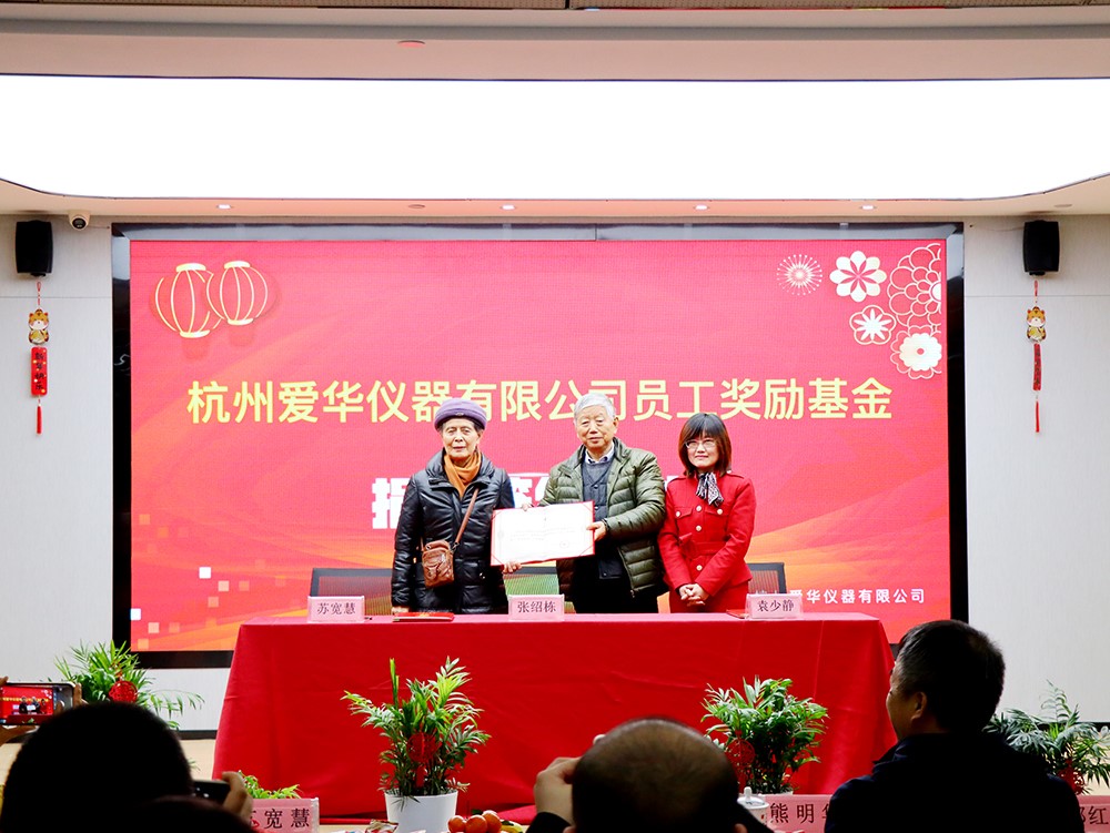 会议上公司创始人张绍栋、苏宽慧夫妇捐资1000万设立“kaiyun★(集团)开云电竞智能科技股份有限公司网站员工奖励基金”,该笔基金将交由公司工会运作和管理,基金收益用于奖励kaiyun开云电竞仪器及控股子公司的杰出员工。